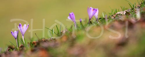 : Crocus flowers are growing on edge of forest near village small village Brdo, Slovenia. Crocus (Crocus Vernus) is early spring flower which gives sign to people that winter is definitely over.