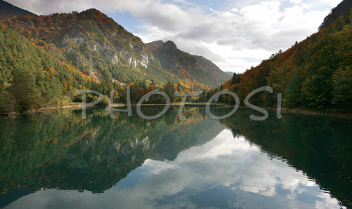 : Peacefull artificial lake on river Zavrsnica near Zirovnica, Slovenia in late autumn. Fall colors are turning landscape near village Zirovnica, Slovenia in beautiful peacefull place where people and animals can find peace after long working week.