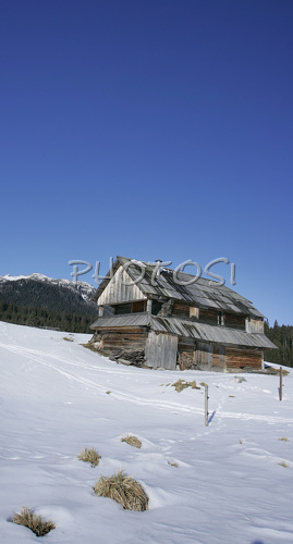 Pokljuka ,Slovenia - 25.12.2006 : Old houses on Javorniska Planina on Pokljuka plateau, Slovenia, are covered with first snow. Land, which is normally covered with snow on end of November, is this year, hardly covered with snow only few days before Christmas.