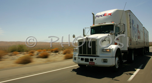 : Trucks on I10 highway between Los Angeles, CA, USA and Desert Springs, CA, USA.