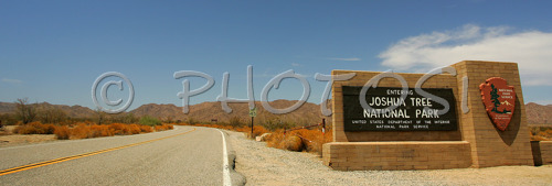 : Joshua tree National Park south entrance in sunny and hot sunny day. Joshua tree National Park is located on junction of Mohave and Colorado desert.