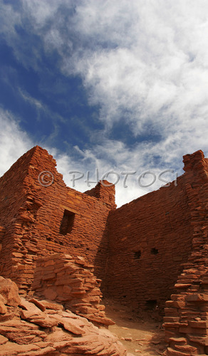 Wupatki National Monument ,USA - 25.06.2007 : Wukoki pueblo is small Sinagua Indians village located in Wupatki National Monument. Sinagua Indians were living around Sunset crater volcano until around year 1250 when Sunset crater volcano erupted for last time, and its eruption finally feared Sinaguas to leave their land. Wupatki National Monument is situated approximately 30 miles north of Flagstaff, AZ, USA in Coconino national forest. Photo by: Primoz Jeroncic/PhotoSI
