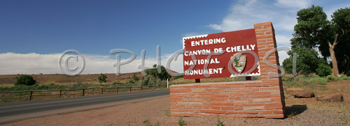 : Welcome table for Canyon de Chelly National Monument on entrance to National Monument. Labyrinth called Canyon de Chelly is really several canyons, which include Canyon de Chelly and Canyon del Muerto. At the mouth of the canyon the rock walls are only 30 feet high. Deeper into the canyons, to the east, the walls rise dramatically until they reach more than 1000 feet above the floor. The cliffs rise straight up, overshadowing the streams, cottonwoods, and small farms below. It has taken about two million years and volumes of water to etch these stone paths through the layers of sandstone and igneous rock as the Defiance Plateau pushed its way upward. Today the canyon still beckons us with its towering stone monoliths and ledges bearing the open windows of ancient people.