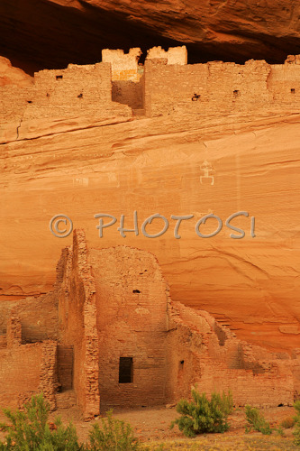 Canyon de Chelly National Monume ,USA - 26.06.2007 : White house ruin below in Canyon de Chelly. White house was built by ancient Puebloan people and occupied around 1000 years ago. It is named for the long wall in the upper dwelling that is covered with white plaster. Canyon de Chelly National Monument is located near Chinle, AZ, USA and is hiding numerous house ruins of Navajo Indians, which were settled in Canyon de Chelly. Labyrinth called Canyon de Chelly is really several canyons, which include Canyon de Chelly and Canyon del Muerto. At the mouth of the canyon the rock walls are only 30 feet high. Deeper into the canyons, to the east, the walls rise dramatically until they reach more than 1000 feet above the floor. The cliffs rise straight up, overshadowing the streams, cottonwoods, and small farms below. It has taken about two million years and volumes of water to etch these stone paths through the layers of sandstone and igneous rock as the Defiance Plateau pushed its way upward. Today the canyon still beckons us with its towering stone monoliths and ledges bearing the open windows of ancient people. Photo by: Primoz Jeroncic/PhotoSI