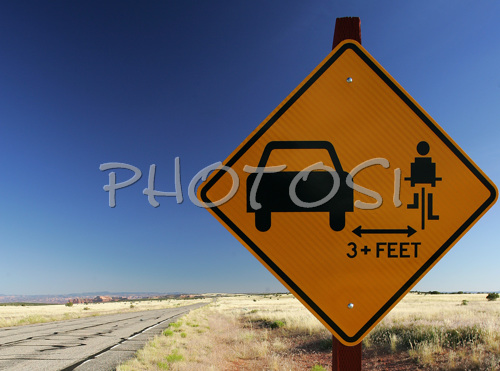 : Table for proper overtaking of cyclists in Canyonlands National park. Canyonlands preserves a wilderness of rock at the heart of the Colorado Plateau. Water and gravity have been the prime architects of this land, cutting flat layers of sedimentary rock into hundreds of canyons, mesas, buttes, fins, arches, and spires. At center stage are two canyons carved by the Green and Colorado rivers. Surrounding the rivers are vast and very different regions, Island in the Sky on north, the Maze at west and the Needles at east. Canyonlands national park is located near Moab, Utah, USA.