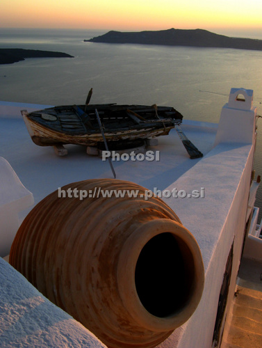 : Traditional Greek houses in Firostefani are scattered on caldera on Santorini island. White houses with bright blue elements like roofs, windows, doors or fences on dark, almost black rocks of vulcano island Santorini, are trademark of Santorini, knows worldwide.