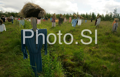 : The Silent People. The almost one thousand strong band that makes up the Silent People suddenly emerges before the passing motorist like some great stroke of magic. In the morning wih he light behind them, this motionless army appears morose, even menacing. However, as the day progress their countenance brightens up and with the setting of the sun, they present a distinctly jolly and colorful picture. Finnish artist Reijo Kela unveiled his peat-headed beings for the first time in his 1988 presentation Ilmaris Ploughed Field in Lassilas Field. They reappeared six years later in Helsinkis Senaatintori Market Place as part of the 1994 Kainuu Exhibition. Some 1200 Silent people had made journey down to Helsinki, but there was room for only 700 of them on the steps of the Cathedral. The Silent People moved to their present home in autumn of 1994. he peat-heads are kept in good shape and have their clothing attended to twice a year. Their heads come straight from the field, their clothes come from organized collections. The Silent People are made and clothed by Suomussalmi Youth Workshop, which also takes care of their maintenance.