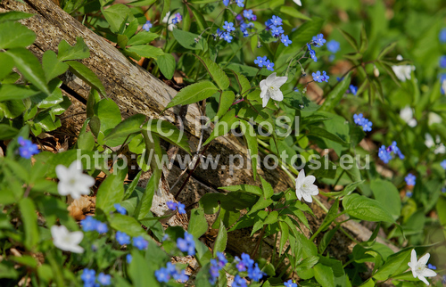 : Blooming forest flowers first green leafs are turning landscape into beautiful bright green carpet laid over spring ground near village Podljubelj, Slovenia.