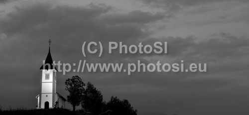 Jamnik ,Slovenia - 26.05.2010 : Church of Saints Primus and Felician in Jamnik, Slovenia on late evening of 26th of May 2010, when sun was setting down behind plateu of Jelovica. Church is build on hill overlooking most of the northern part of the Ljubljana Basin with the Julian Alps as a backdrop towards the northwest and the Kamnik Alps towards the east. Photo by: Primoz Jeroncic