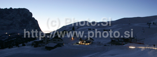 : Landscape around Gardena pass in Val Gardena, Italy on cold winter evening of 18th of December 2010.