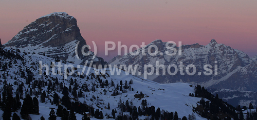 Val Gardena ,Italy - 11.03.2011 : Landscape with high Dolomite mountains around Gardena pass in Val Gardena, Italy on late winter evening of 11th of March 2011. Photo by: Primoz Jeroncic