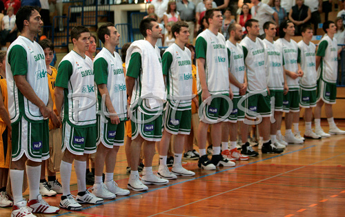 : Slovene team before preparation match for Olympic qualifications, between Slovenia and Croatia. Preparation match between Slovenia and Croatia was played in Sencur, Slovenia, on Saturday, 28th of June 2008.