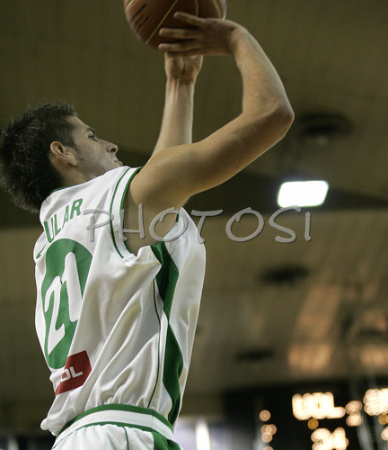 : Sandi Cebular (no. 21) of Union Olimpija shooting during match NLB League between KK Union Olimpija, Ljubljana, Slovenia and Split Osiguranje, Croatia. Match ended with victory of Union Olimpija, who defeated Split Osiguranje with 85:71. Match between KK Union Olimpija and Split Osiguranje was played in Tivoli hall in Ljubljana, Slovenia on 25. November 2006.