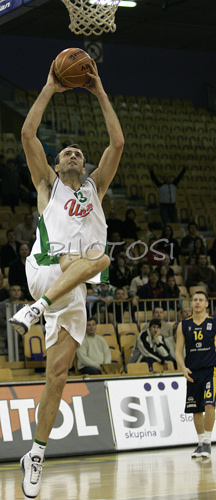 : Ivica Jurkovic (no. 13) of Union Olimpija in one of his dunks during match of NLB League between Union Olimpija, Ljubljana, Slovenia and KK Zagreb, Croatia. Match ended with victory of Union Olimpija, who defeated Zagreb with 87:76. Match between KK Union Olimpija and Zagreb was played in Tivoli Arena in Ljubljana, Slovenia on 9. December 2006.