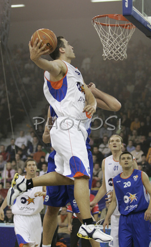 : Marko Milic (no.12) of West ALL Stars team scores during first NLB league ALL Stars match. Match ended with victory of West All Stars team, who defeated East All Stars team with 134:118. First NLB League All Stars match was played in Tivoli Arena in Ljubljana, Slovenia on 27. December 2006.