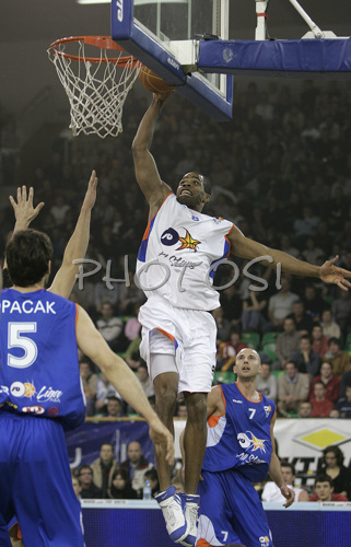 : Levour Christopher Warren (no.8) of West ALL Stars team scores during first NLB league ALL Stars match. Match ended with victory of West All Stars team, who defeated East All Stars team with 134:118. First NLB League All Stars match was played in Tivoli Arena in Ljubljana, Slovenia on 27. December 2006.