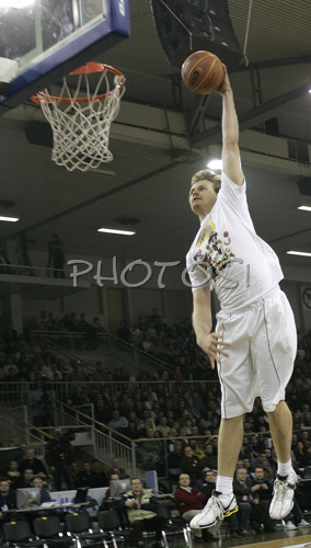 : Winner of dunking competition of first NLB league ALL Stars match Miha Zupan in one of his dunks. Match ended with victory of West All Stars team, who defeated East All Stars team with 134:118. First NLB League All Stars match was played in Tivoli Arena in Ljubljana, Slovenia on 27. December 2006.