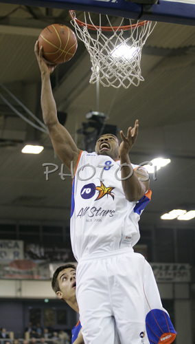 : Levour Christopher Warren (no.8) of West ALL Stars team during first NLB league ALL Stars match. Match ended with victory of West All Stars team, who defeated East All Stars team with 134:118. First NLB League All Stars match was played in Tivoli Arena in Ljubljana, Slovenia on 27. December 2006.