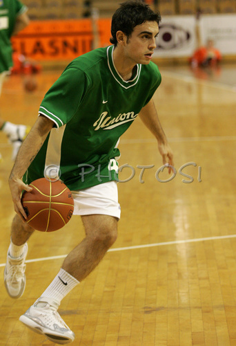 : Ender Arslan (no. 4) of Union Olimpija during warmup before match of NLB League between KK Union Olimpija, Ljubljana, Slovenia and KK Hemofarm, Vrsac, Serbia. Match ended with victory of Hemofarm, who defeated Union Olimpija with 68:73. Match between KK Union Olimpija and KK Hemofarm was played in Tivoli hall in Ljubljana, Slovenia on 21. October 2006.