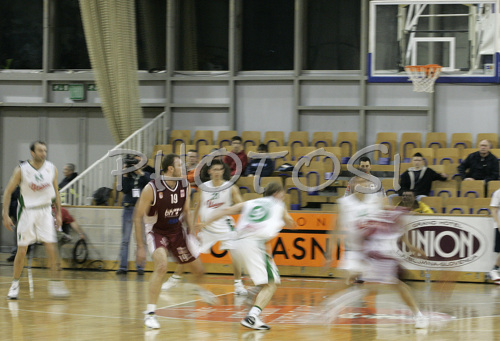 : Players of Union Olimpija and KK Bosna ASA BH Telecom during NLB league match of 21. round between KK Union Olimpija, Ljubljana, Slovenia and KK Bosna Asa BH Telecom, Sarajevo, Bosnia and Hercegovina. Match ended with victory of Union Olimpija, who defeated KK Bosna ASA BTH with 93:68. Match between KK Union Olimpija and KK Bosna Asa BHT was played in Tivoli Arena in Ljubljana, Slovenia on 17. February 2007.