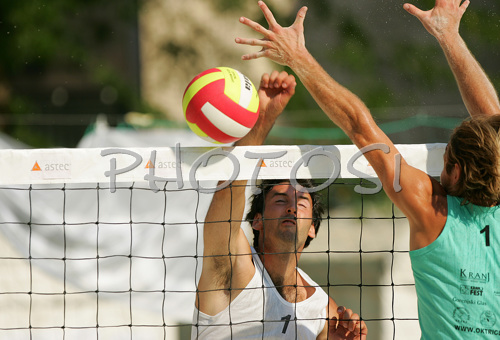 Kranj ,Slovenia - 28.07.2007 : Half final match of Men National championships in beach volleyball between team of Beach Volleyball club Kranj and team of Boznar and Partner was held in Kranj, Slovenia on 28th of July 2007. Match was won by Boznar and Partner. Photo by: Primoz Jeroncic/PhotoSI