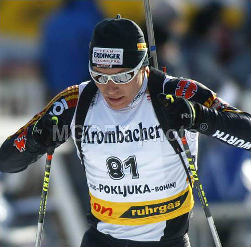 Pokljuka ,Slovenia - 16.02.2005 : Third placed Andreas Birnbacher of Germany leaving shooting place after second shooting during sprint competition of the Biathlon World Cup in Pokljuka. Biathlon Ruhrgas World Cup was held on Pokljuka, Slovenia between 16. and 20.February 2005. Biathletes were competing on Wednesday in 10km sprint race which was won by Alexandre Syman of Belarus, Sergei Roshkov of Russia placed second while Andreas Birnbacher of Germany finished third. Photo by: Primoz Jeroncic/PhotoSI