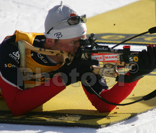 Pokljuka ,Slovenia - 08.03.2006 : Ferreol Cannard of France during prone shooting in men sprint race of e.on Ruhrgas IBU Biathlon World cup which was held on Pokljuka, Slovenia on 8.March 2006. Photo by: Primoz Jeroncic/PhotoSI