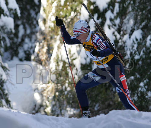: Anna Bogaliy-Titovets of Russia skiing during women sprint race of e.on Ruhrgas IBU Biathlon World cup which was held on Pokljuka, Slovenia on 9.March 2006.