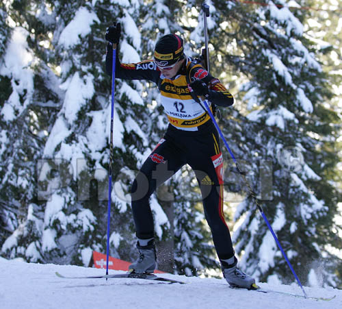 : Katrin Apel of Germany skiing during women sprint race of e.on Ruhrgas IBU Biathlon World cup which was held on Pokljuka, Slovenia on 9.March 2006.