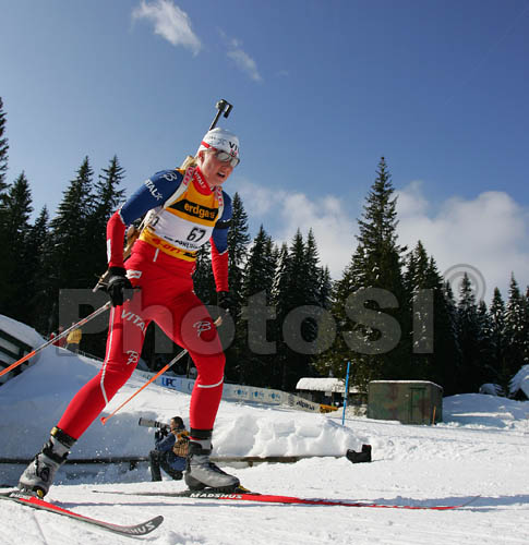 Pokljuka ,Slovenia - 09.03.2006 : Winner Linda Tjorhom of Norway skiing during women sprint race of e.on Ruhrgas IBU Biathlon World cup which was held on Pokljuka, Slovenia on 9.March 2006. Photo by: Primoz Jeroncic/PhotoSI