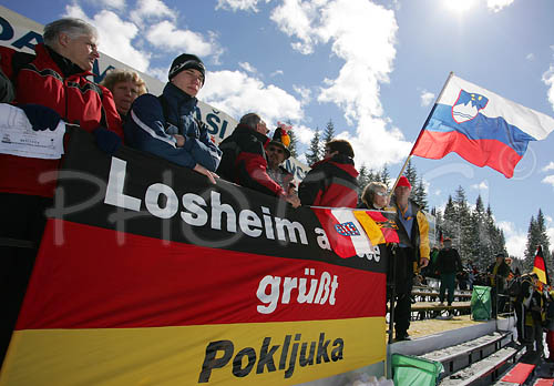 Pokljuka ,Slovenia - 11.03.2006 : Spectators having fun before women pursuit race of e.on Ruhrgas IBU Biathlon World cup which was held on Pokljuka, Slovenia on 11.March 2006. Photo by: Primoz Jeroncic/PhotoSI