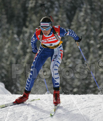 Pokljuka ,Slovenia - 11.03.2006 : Michela Ponza of Italy skiing during women pursuit race of e.on Ruhrgas IBU Biathlon World cup which was held on Pokljuka, Slovenia on 11.March 2006. Photo by: Primoz Jeroncic/PhotoSI