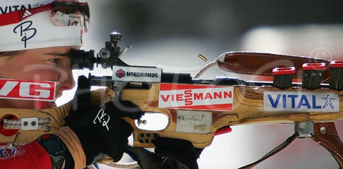 : Ann Kristin Flatland of Norway during zeroing before women pursuit race of e.on Ruhrgas IBU Biathlon World cup which was held on Pokljuka, Slovenia on 11.March 2006.