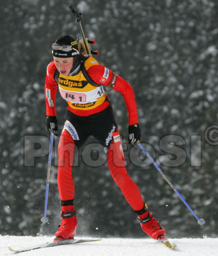 Pokljuka ,Slovenia - 12.03.2006 : Dijana Grudicek of Slovenia skiing during mixed relay race of IBU Biathlon World Championship which was held on Pokljuka, Slovenia on 12.March 2006. Race was won by relay of Russia, relay of Norway placed second, while relay of France finished third. Photo by: Primoz Jeroncic/PhotoSI
