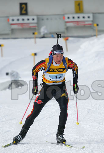 Pokljuka ,Slovenia - 12.03.2006 : Andreas Birnbacher of Germany leaving shooting place after final shooting during mixed relay race of IBU Biathlon World Championship which was held on Pokljuka, Slovenia on 12.March 2006. Race was won by relay of Russia, relay of Norway placed second, while relay of France finished third. Photo by: Primoz Jeroncic/PhotoSI