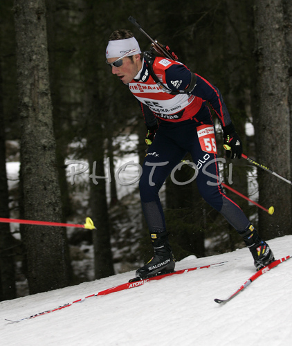 : Ferreol Cannard of France skiing in men sprint race on Pokljuka, Slovenia. IBU Biathlon World Cup sprint race was held on Pokljuka, Slovenia on 18th of January 2007.