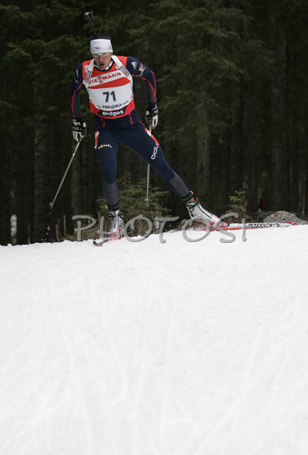: Lois Habert of France skiing in men sprint race on Pokljuka, Slovenia. IBU Biathlon World Cup sprint race was held on Pokljuka, Slovenia on 18th of January 2007.
