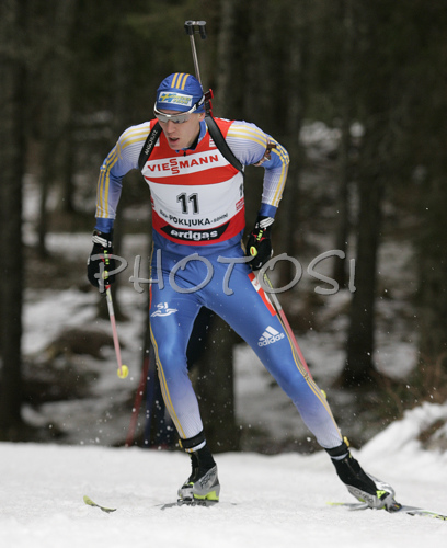 : Second placed Björn Ferry of Sweden skiing in men sprint race on Pokljuka, Slovenia. IBU Biathlon World Cup sprint race was held on Pokljuka, Slovenia on 18th of January 2007.
