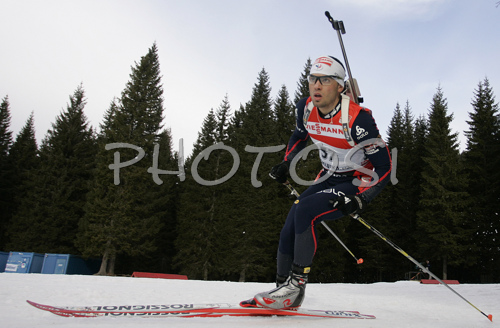 Pokljuka ,Slovenia - 20.01.2007 : Simon Fourcade of France skiing in men pursuit race on Pokljuka, Slovenia. IBU Biathlon World Cup sprint race was held on Pokljuka, Slovenia on 20th of January 2007. Photo by: Primoz Jeroncic/PhotoSI
