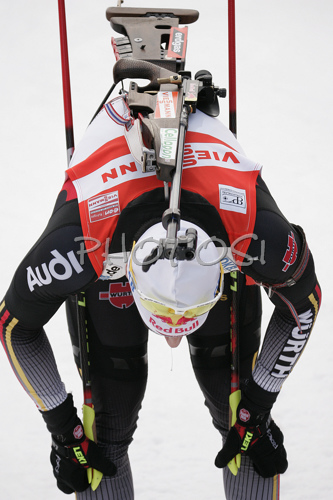 : Ricco Gross of Germany finishing men pursuit race on Pokljuka, Slovenia. IBU Biathlon World Cup sprint race was held on Pokljuka, Slovenia on 20th of January 2007.