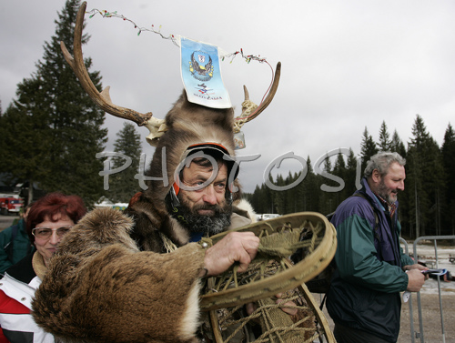 : Spectators before start of women mass start race on Pokljuka, Slovenia. IBU Biathlon World Cup sprint race was held on Pokljuka, Slovenia on 21th of January 2007.