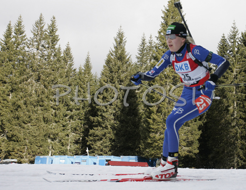 : Kaisa Mäkäräinen of Finland skiing in women mass start race on Pokljuka, Slovenia. IBU Biathlon World Cup sprint race was held on Pokljuka, Slovenia on 21th of January 2007.