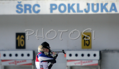 : Kaisa Mäkäräinen of Finland during last shooting in women mass start race on Pokljuka, Slovenia. IBU Biathlon World Cup sprint race was held on Pokljuka, Slovenia on 21th of January 2007. Credit: Primoz Jeroncic / PhotoSI