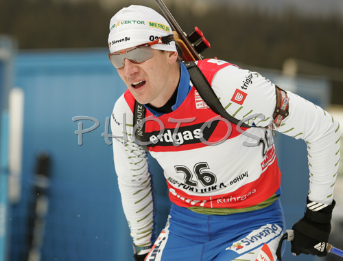 Pokljuka ,Slovenia - 21.01.2007 : Janez Maric of Slovenia skiing in men mass start race on Pokljuka, Slovenia. IBU Biathlon World Cup sprint race was held on Pokljuka, Slovenia on 21th of January 2007. Photo by: Primoz Jeroncic/PhotoSI