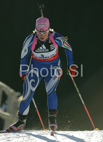: Katja Haller of Italy skiing in women individual race of e.on Ruhrgas IBU Biathlon World Cup. Women individual race of e.on Ruhrgas IBU Biathlon World Cup was held in Pokljuka, Slovenia, on 13th of December 2007.