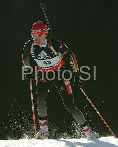 : Andrea Henkel of Germany skiing in women individual race of e.on Ruhrgas IBU Biathlon World Cup. Women individual race of e.on Ruhrgas IBU Biathlon World Cup was held in Pokljuka, Slovenia, on 13th of December 2007.