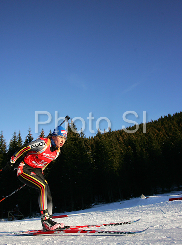 : Third placed Martina Glagow of Germany skiing in women individual race of e.on Ruhrgas IBU Biathlon World Cup. Women individual race of e.on Ruhrgas IBU Biathlon World Cup was held in Pokljuka, Slovenia, on 13th of December 2007.