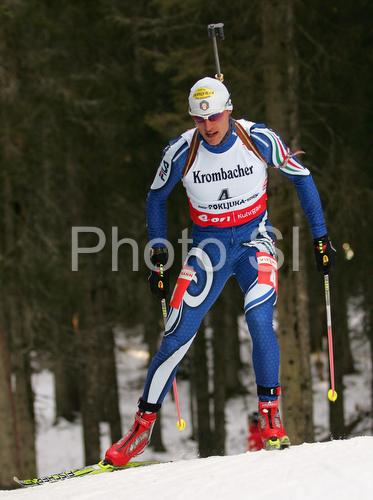 : Mattia Cola of Italy skiing in men sprint race of e.on Ruhrgas IBU Biathlon World Cup. Men sprint race of e.on Ruhrgas IBU Biathlon World Cup was held in Pokljuka, Slovenia, on 15th of December 2007.