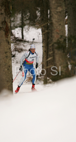 : Peter Dokl of Slovenia skiing in men sprint race of e.on Ruhrgas IBU Biathlon World Cup. Men sprint race of e.on Ruhrgas IBU Biathlon World Cup was held in Pokljuka, Slovenia, on 15th of December 2007.