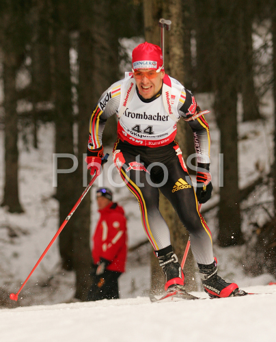 : Michael Greis of Germany skiing in men sprint race of e.on Ruhrgas IBU Biathlon World Cup. Men sprint race of e.on Ruhrgas IBU Biathlon World Cup was held in Pokljuka, Slovenia, on 15th of December 2007.